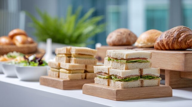 Miniature sandwich towers beckon under morning ambrosia, invoking brunch-time serendipity and International Picnic Day revelry
