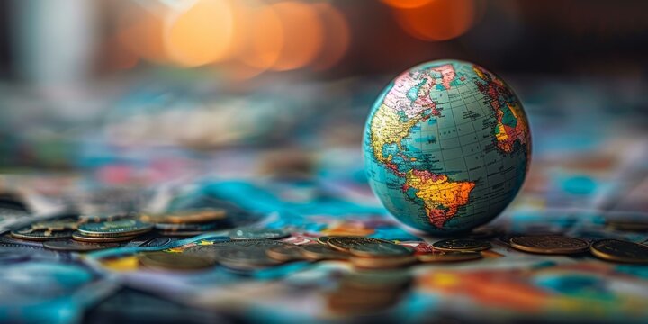A neatly dressed businessman with a holographic projection of a bright, glowing earth signifying global connectivity and economy
