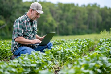 Advancements in digital farming are revolutionizing agriculture. With computer in hand, a grower analyzes precision data amidst his acreage