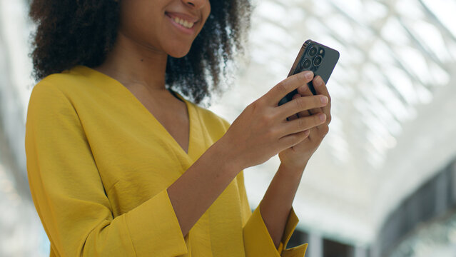 Happy woman engaging with social media notifications