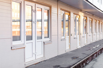 Red and blue network cables with connectors neatly arranged face to face symbolizing data connection and communication technology concepts in close-up view