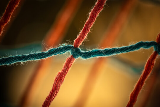 Close-up of two intersecting metallic chains in dark background, Connections, Strength, Security