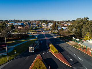Aerial view of busy urban highway intersection
