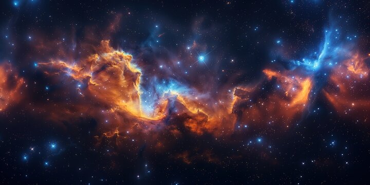 A captivating night sky image showcasing a multitude of stars, with vivid nebulae and interstellar clouds illuminating the vastness of the cosmos in rich detail.