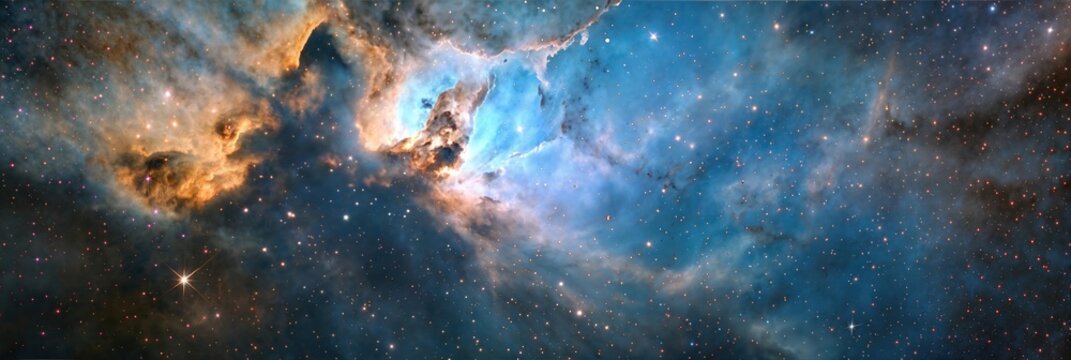 Majestic Blue Nebula in Deep Space with Interstellar Clouds and Shimmering Stars - Cosmic Header Banner Design for Abstract Space Art, Galaxy Exploration, Supernova Imagery, and Universe Themes