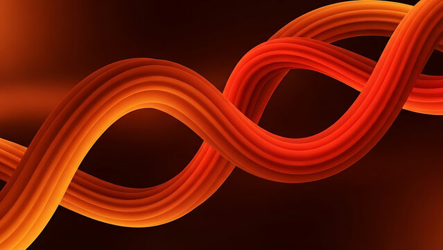 Abstract 3D fluid shape background featuring intertwining glowing orange and red wavy lines