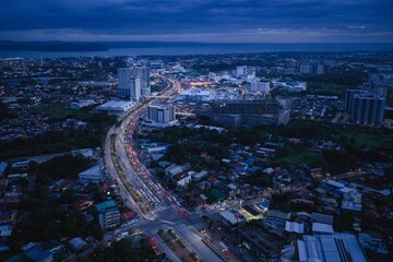 Abstract flowing blue-purple neon wave with particle mesh and glowing light trails