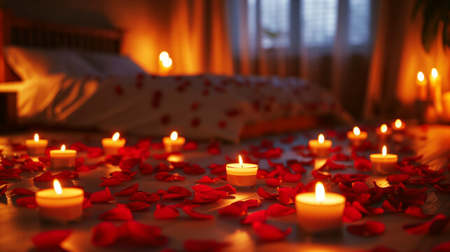 A dreamy bedroom with soft, glowing lights and a peaceful, romantic setting perfect for relaxation and comfort.