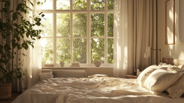 A serene bedroom setting with someone peacefully sleeping in bed, creating a sense of relaxation