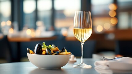 Moules-frites with a lit candle nearby, creating a cozy and intimate dining atmosphere.