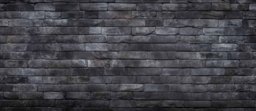 A detailed monochrome photograph capturing the intricate pattern of grey brickwork, showcasing the composite material and rectangular shape of the black brick wall