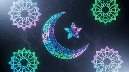 Glowing neon kaleidoscopic mandala pattern on dark background