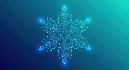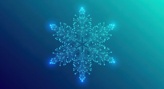 Digital snowflake futuristic circuit board pattern on gradient blue background design