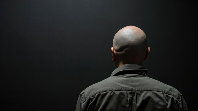 Solitude in Shadows: The Back View of a Bald Man in Contemplation