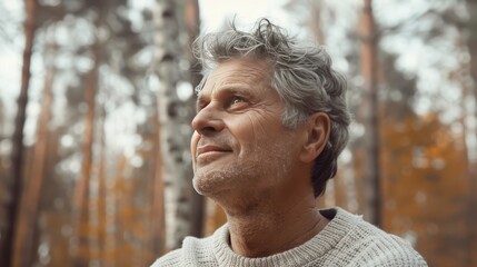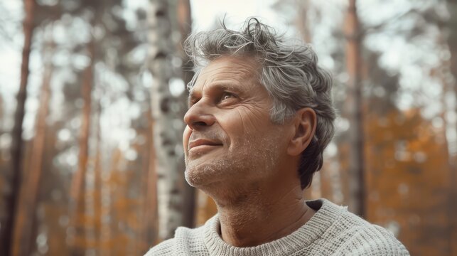 Pensive European senior man, emotional portrait of reflection and life challenges. Emotive portrait of a 55–65 year old man outdoors