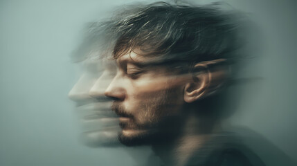 Surreal portrait of man with blurred motion effect and introspective expression. blurred expression. Illustration