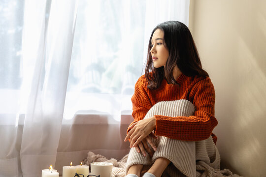 Thoughtful asian man relaxing by window during daytime
