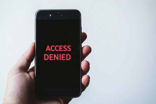 a man holding a smartphone and the screen showing the word " Access Denied" , illustrating forgetting password or the smartphone  is being hacked