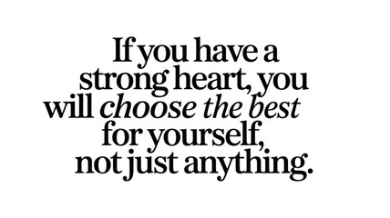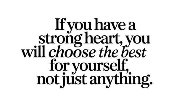 Inspiring quotes for life about having strong heart and making best choice for yourself. positive message for personal development and self worth for better future