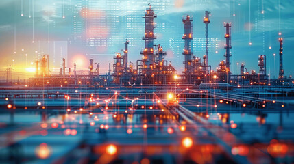Futuristic Energy Industry Factory Plant with Digital Data Visualization in Oil and Gas Sector