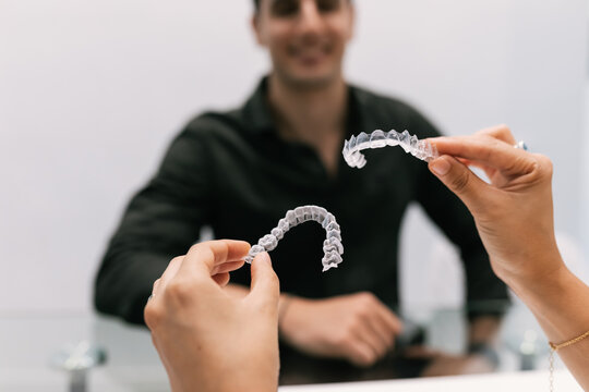Dentist's hands showing invisible orthodontics to your patient
