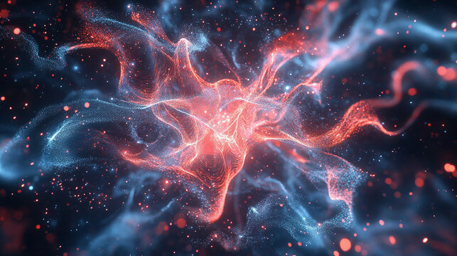 Dynamic light particles colliding in an energetic display, symbolizing motion, power, energy, creation, and the invisible forces shaping the universe in abstract form.