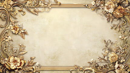 Golden decorative frame with scrolling filigree and vintage parchment center for invitations