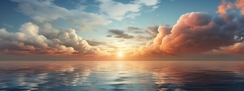 Serene seascape at sunset, where sky meets water, invoking peace and reflection.
