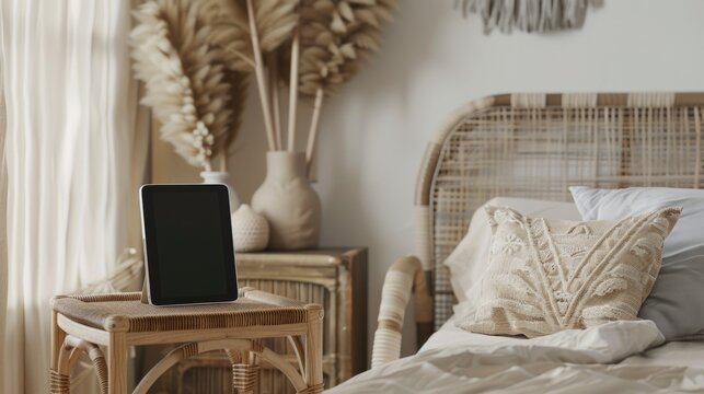 Mockup empty blank tablet pro screenin side cactus
