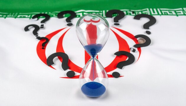 Iranian flag, textured fabric, close-up, sunlight, background blur, news
