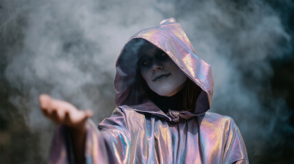 Iridescent cloak witch Halloween festival costume smoke mysterious magic mysterious witch iridescent cloak reaches out through