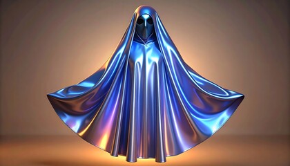 Isolated ethereal iridescent ghost or ghoul draped in fabric, otherworldly form mystic entity