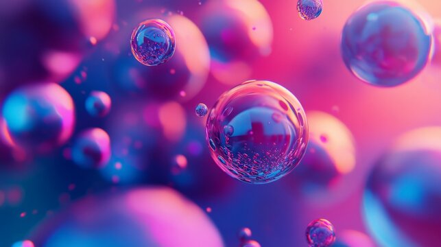 Pastel background with iridescent magical air bubbles. Wallpaper with glass balls. Generative AI