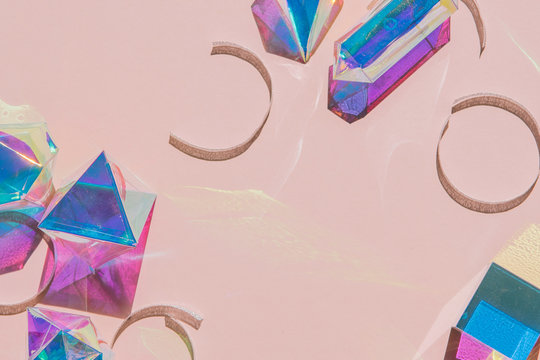 macro photo of silver rainbow holographic foil, colorful hologram surface, glitter grid pattern background.