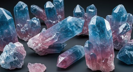 Collection of iridescent crystals with pastel colors on white background