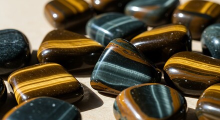 Polished Tigers Eye and Hawks Eye Gemstone Collection.