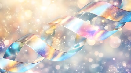 Iridescent Pink Glitter Ribbons Flowing Across Pastel Bokeh Background For Elegant Design Images