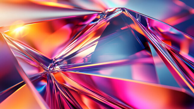 Abstract iridescent 3D crystal shape with vibrant colors, showcasing a futuristic and artistic digital design against a clean minimalist background.