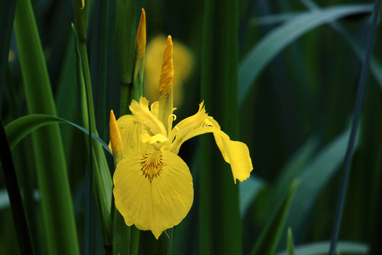 Yellow iris pseudacorus near water