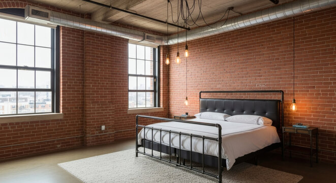 Clean and cozy hotel room featuring a freshly made king sized bed with a stylish headboard perfectly ironed sheets and plush pillows bathed in natural sunlight King size bed displayed in a s