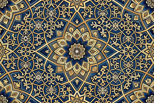 Elegant bas-relief of an intricate Islamic or Indian ornamental pattern. 3D wallpaper with beautiful floral and geometric mandala designs.