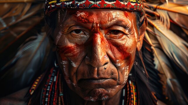 A close-up shot of a person wearing a unique headdress, suitable for use in cultural or historical contexts