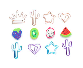 Abstract shapes and leaves in yellow, green, black and orange colors isolated on white background.