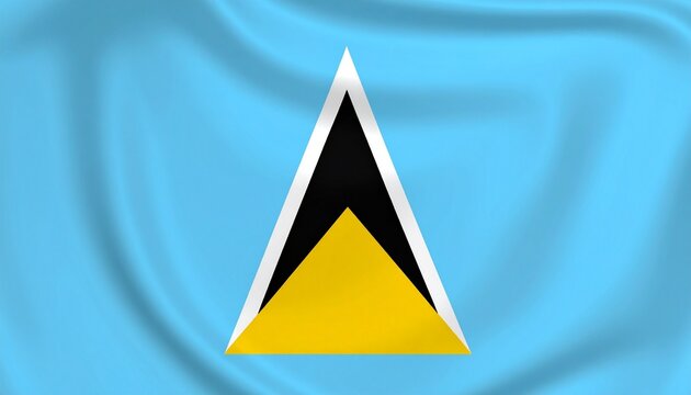 Saint Lucia national flag with cerulean blue field, white-edged black triangle over yellow triangle, symbolizing Pitons.