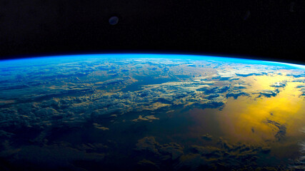 Sunlight reflection over planet Earth. Digital enhancement. Elements by NASA