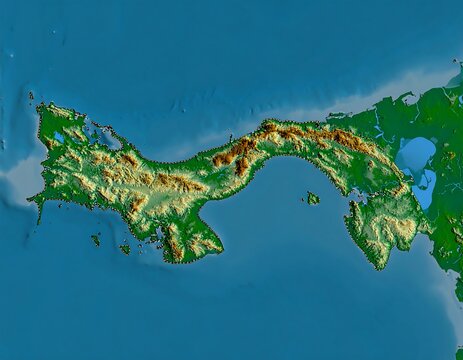 Detailed topographic map of a Central American isthmus