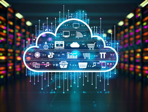 Cloud Computing Technology Concept, Data Storage and Management, Digital Transformation, Cloud Infrastructure, Modern IT Solutions, Remote Work Tools, Business Digitalization, Online Collaboration