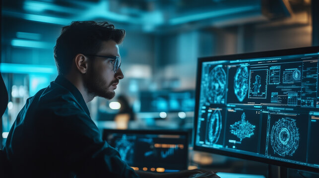 It Engineer Analyzing Cybersecurity Threats With Digital Interface Images