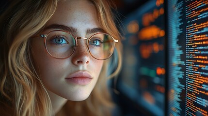 Woman analyzing cybersecurity in data center