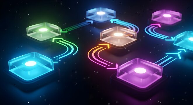 IT professional in a futuristic data center analyzing a holographic blockchain or neural network.